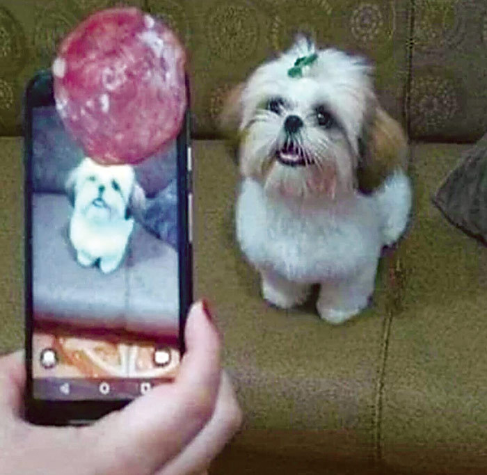 Well, if you put a piece of salami on your phone, your dog will look right at it.