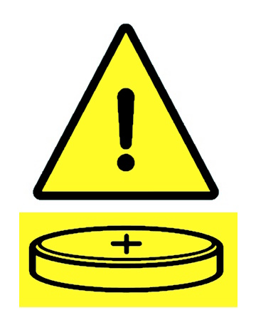 An example of the button battery safety alert symbol (it may vary in colour and size).