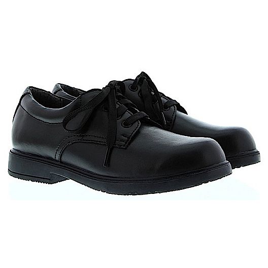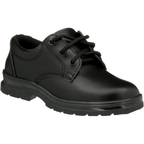 We bought five pairs of classic black lace-up school shoes, at a wide range of prices: