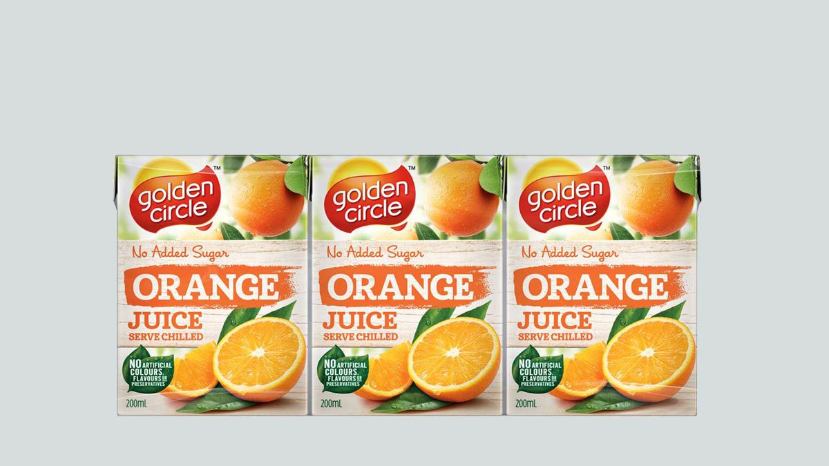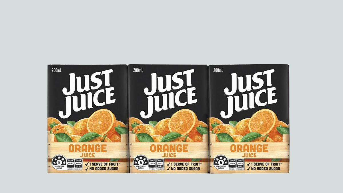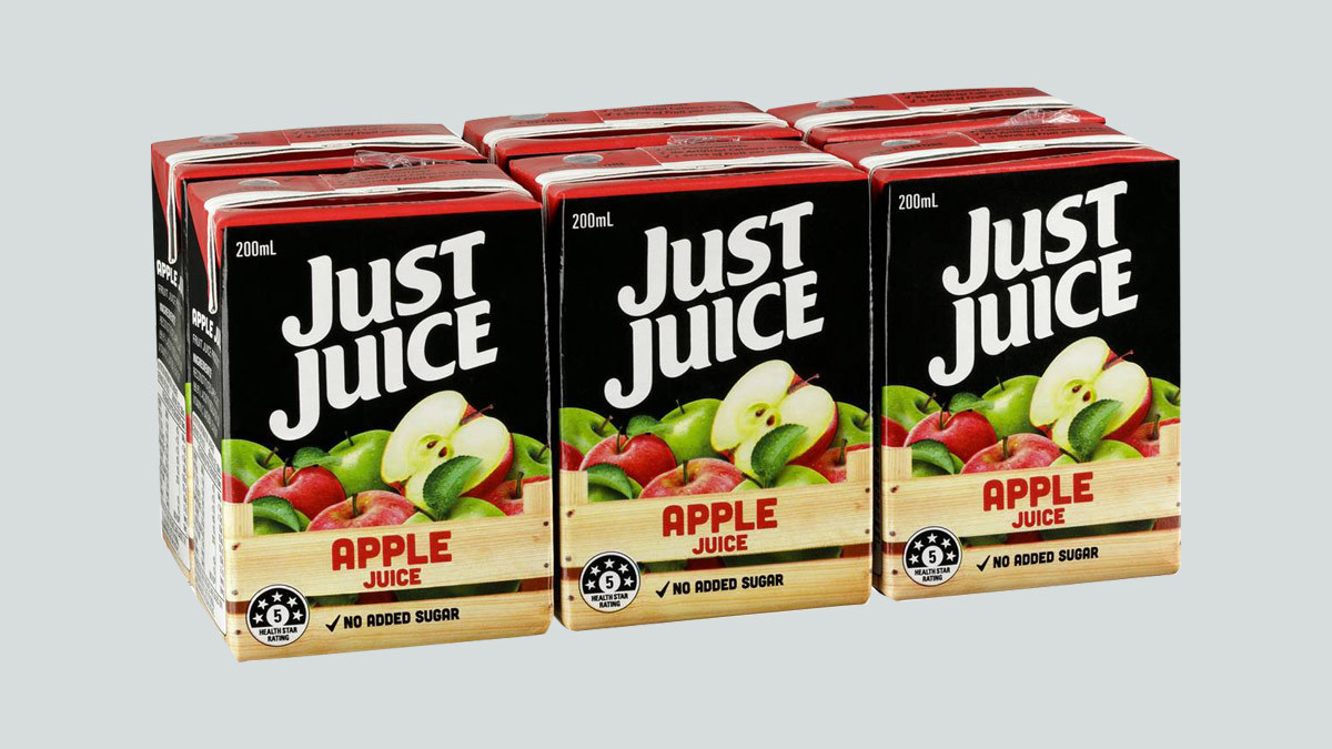 Golden Circle No Added Sugar Orange Juice (200mL). Price/100mL: $0.31 (in a 6-pack)Just Juice Orange Juice (200mL). Price/100mL: $0.44 (in a 6-pack)Nudie Nothing But 2 Oranges (200mL). Price/100mL: $0.75Just Juice Apple Juice (200mL). Price/100mL: $0.44 (in a 6-pack)Prima Apple No Added Sugar* (200mL). Price/100mL: $0.27 (in a 6-pack).