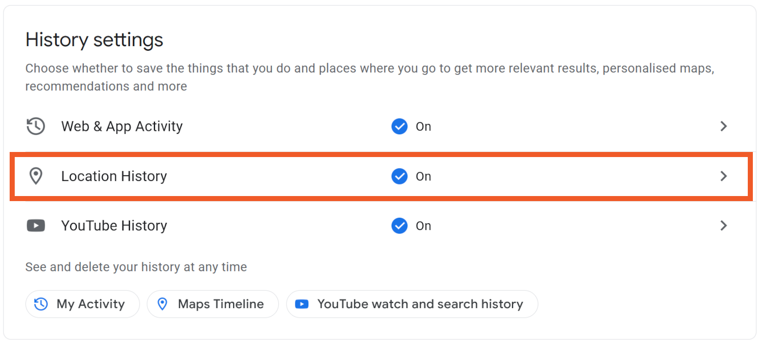 Google keeps tabs on all kinds of online activities in Maps, Chrome, the Play Store and beyond. To view and control this data, click on Web & App Activity in the History settings section.
