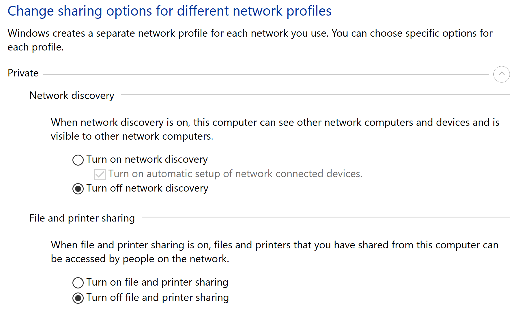 You might want your device to be discoverable on your private or domain network so you can share files or stream content from or to it with other devices on that network. However, when on a public network it’s best to remain hidden to avoid prying eyes.