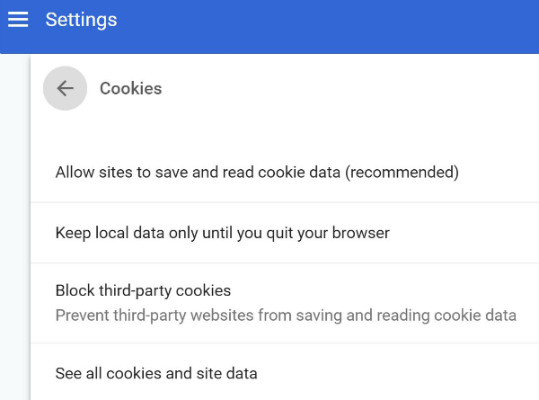 Cookies. Turning cookies off completely would disable all the features we’ve talked about so far, not just the tracking ones. So it’s advisable to not block them entirely.