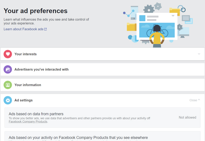 Alternatively, you can go to the Your interests tab and make advertisements more relevant to you by pruning topics you don’t like.