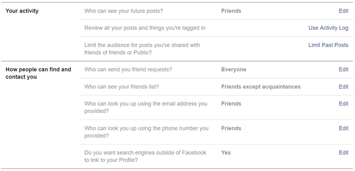 2) Read each line and select your level of privacy. Some, such as Who can send you friend requests, only let you choose between Everyone and Friends of friends. Others, such as Who can see your friends list, are more specific, even letting you create your own custom filter. From this menu, you can also hide your Facebook page from appearing in any external search engine results.