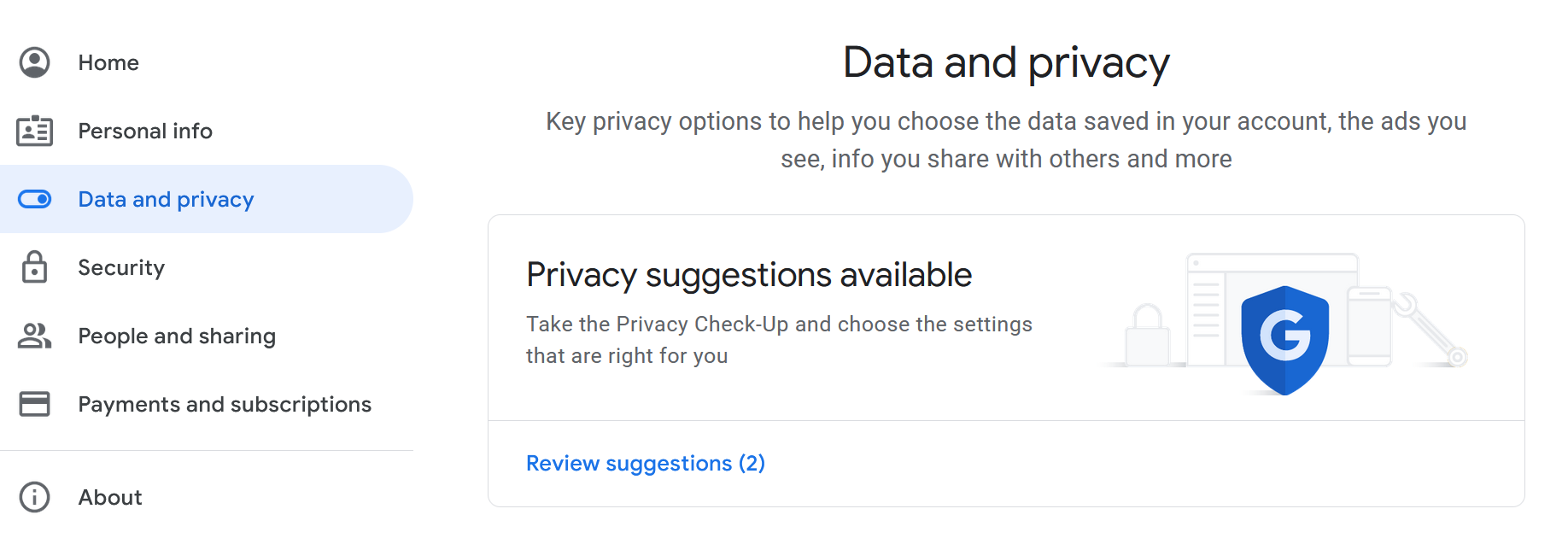 Data and privacy: Control how Google stores and shares your data