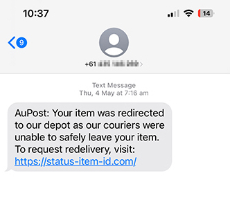 A text message or email appearing to be from a trusted institution that includes links it’s asking you to click on (government agencies such as the ATO and major banks will never do this).