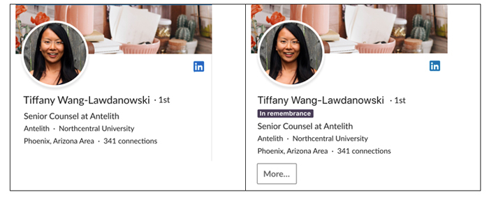 An authorised person can memorialise your LinkedIn account after you die. Source: LinkedIn
