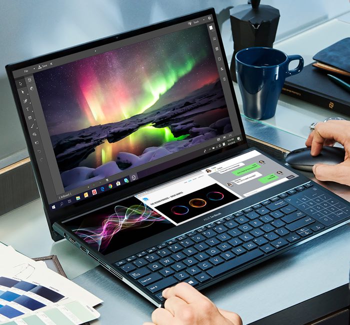 The Asus ZenBook Pro Duo gives you two built-in screens working together seamlessly. The top-end 15.6-inch Pro model is a serious desktop replacement that will appeal to creative professionals and enthusiasts and gamers alike, but at a premium price. There’s also a more wallet-friendly, but still dual-screen, 14-inch model, called the ZenBook Duo.