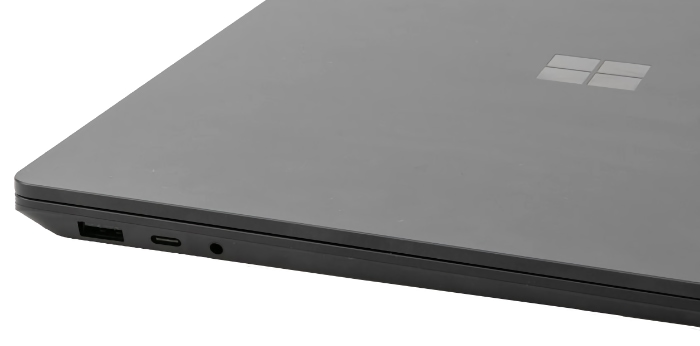 The Surface Laptop 4 has the same limitations for external connections as the previous model, with one USB-C port and one USB-A port, both on the same side, along with a headphone jack. The generation of the ports is not specified, but the USB-C port isn’t a Thunderbolt port. The USB-C port can be used with an external display, mouse, storage, and other USB devices if you plug in an external hub.