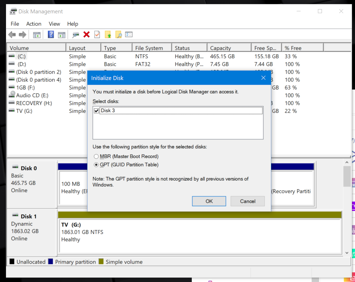 Once done, right-click the drive and select New Simple Volume… then follow the prompts.