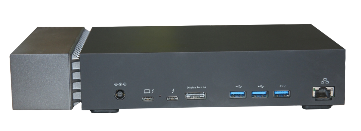The interface for a monitor is DisplayPort (1.4); there are five USB 3.1 (Gen2) ports (three on the rear and two in the front), as well as two USB-C Thunderbolt 3 ports, one of which is needed as the main connection to your laptop. Gigabit ethernet is on the rear, while audio jacks are on the front.