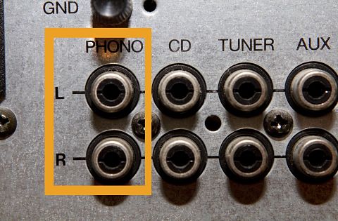 • Amplifier/receiver: look for a port called Phono on the back of the unit. This is a special port designed for turntables with an inbuilt preamp. These are standard on units that pre-date CD and fairly common on older units built after CD became the standard format. Modern amps vary, except for high-end models which usually include Phono IN.