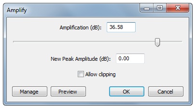 2. Audacity should automatically generate an ideal amplification level, but you can increase/decrease this by moving the slide bar. However, Audacity won’t let you increase the volume beyond the point of damaging the audio, unless you tick Allow clipping. We don’t recommend this.