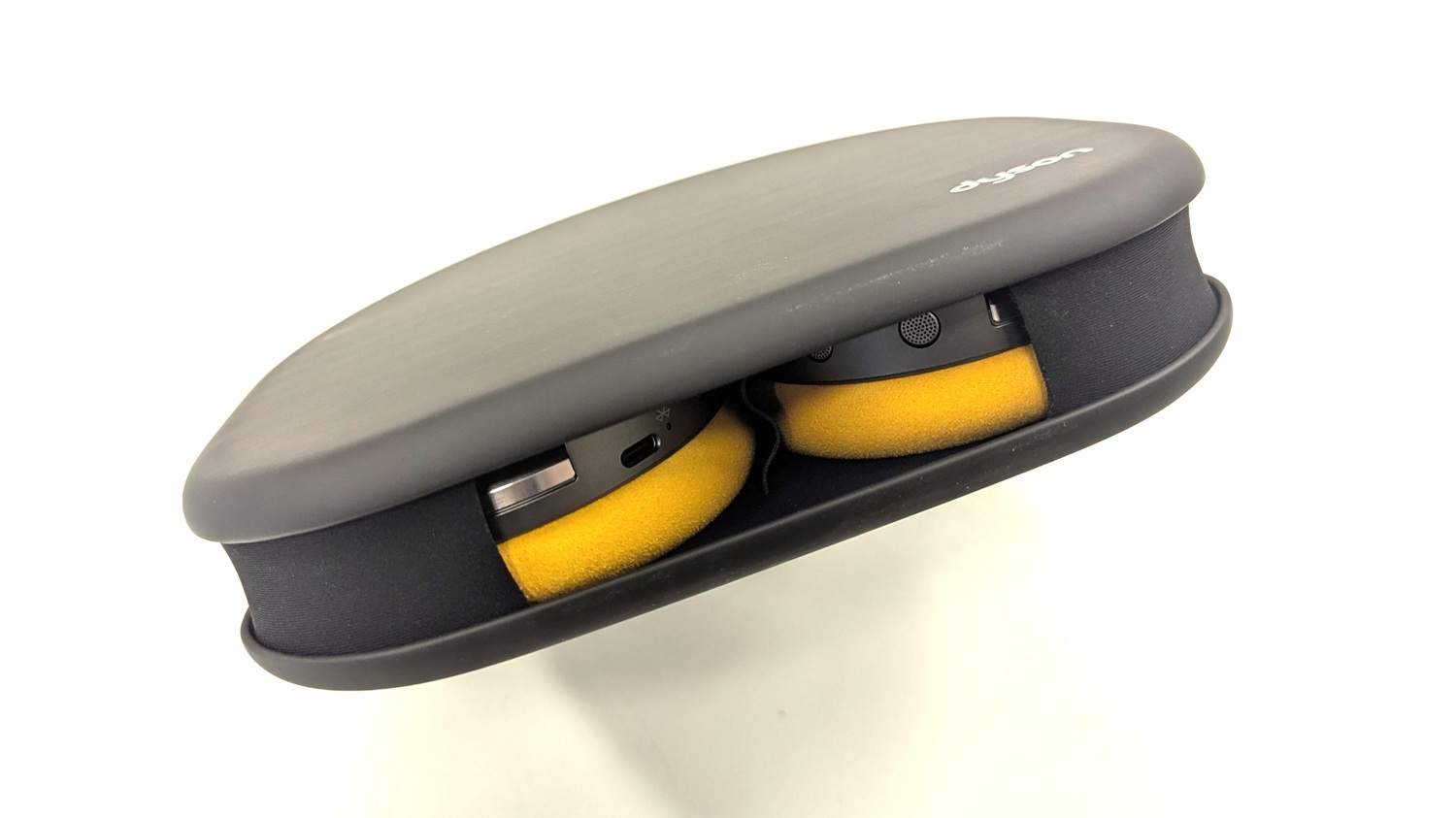 The headphones do come with a slimline case included, but calling it a case is a bit generous. The clamshell design stays open at the top and bottom which does little to protect the headphones from wayward dust, grit, grime, fluids and so on.