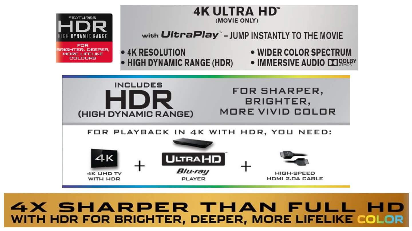 HDR is exclusive to 4K UHD discs. This means you won’t find HDR-encoded content on DVD or Blu-ray. Almost every movie and show released on 4K UHD disc supports HDR10 and this is proudly proclaimed on the front or back of the case. Extra information about HDR10+ and/or Dolby Vision availability is typically printed in the technical information on the back, towards the bottom.