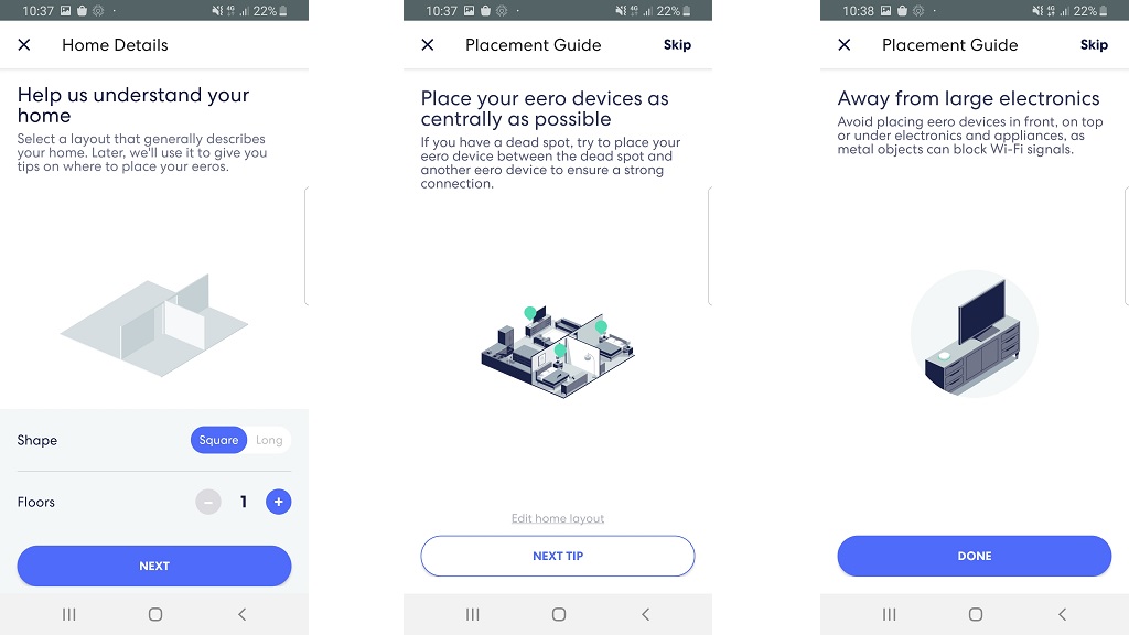 Handy tips help you put each Eero satellite or ‘nodes’ in the best place to create the strongest Wi-Fi coverage.