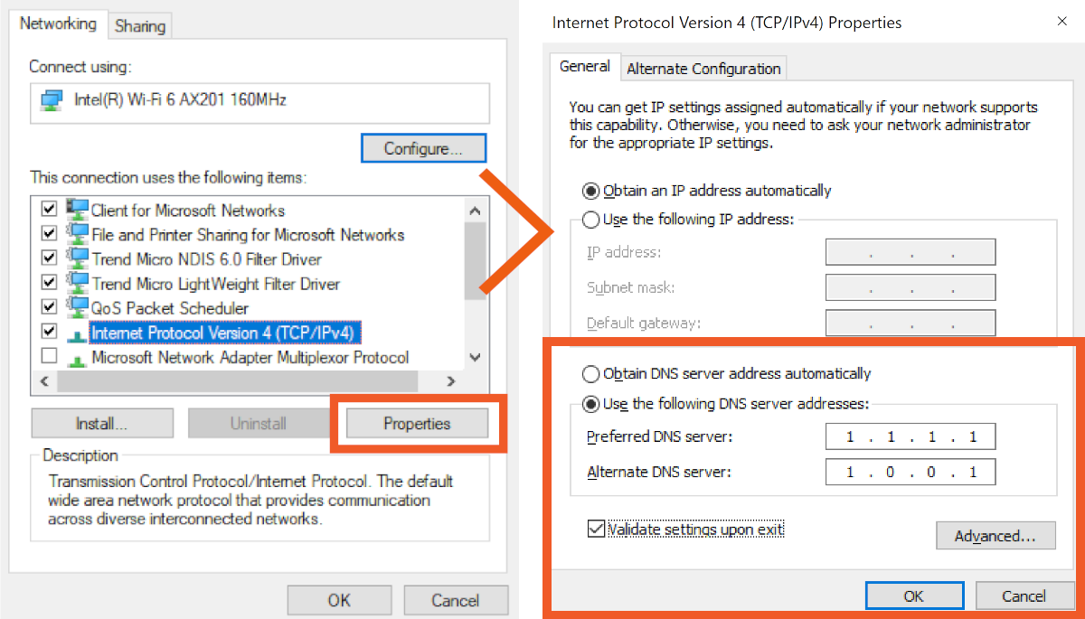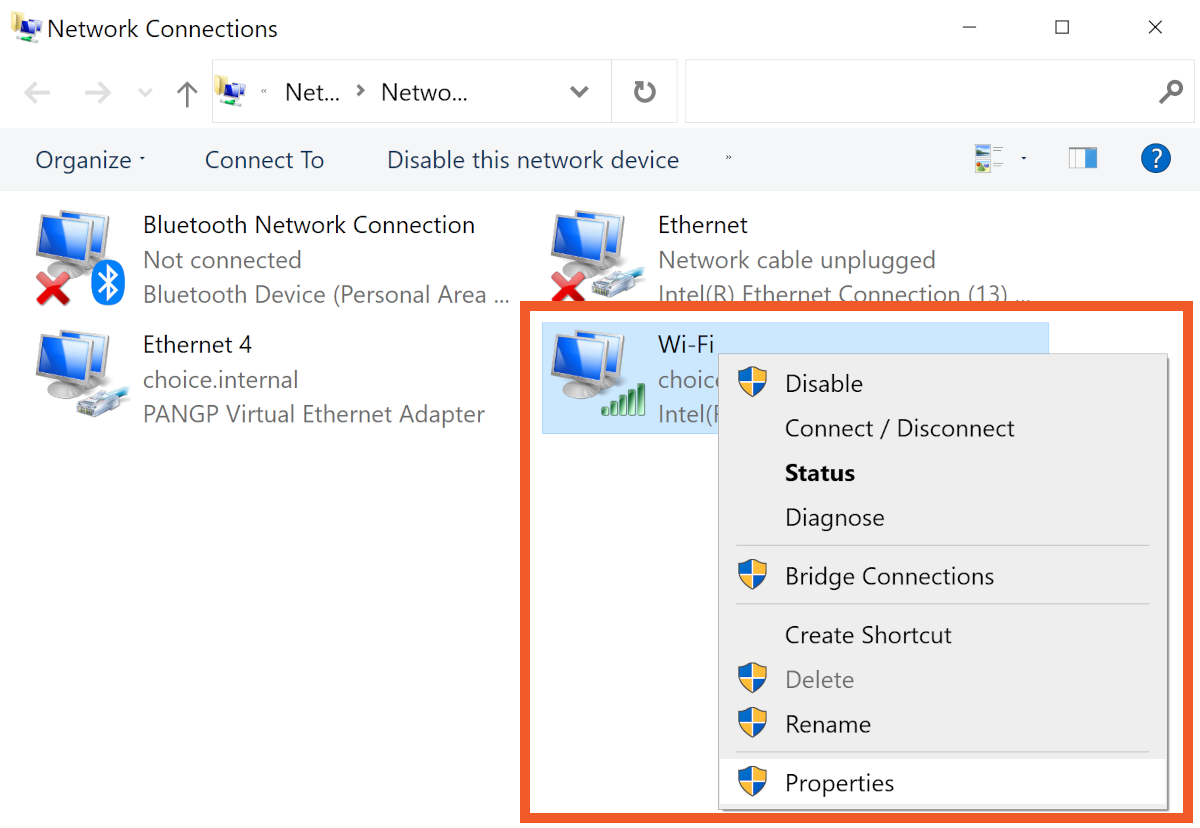 Click on Internet Protocol Version 4 (TCP/IPv4) to highlight it (don’t untick the toggle next to it). Once it’s highlighted, click Properties.