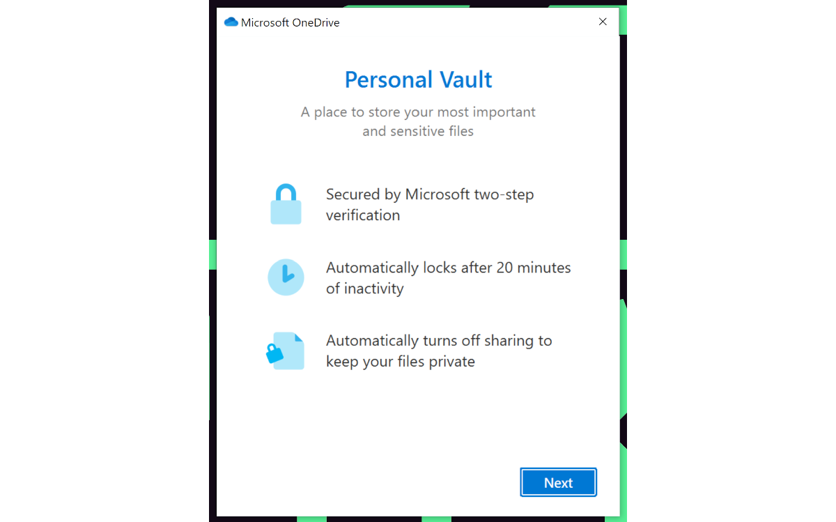 Setting up OneDrive’s encrypted Personal Vault