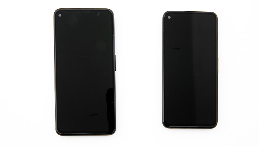 The Pixel 4a 5G (left) is larger than the standard Pixel 4a (right).