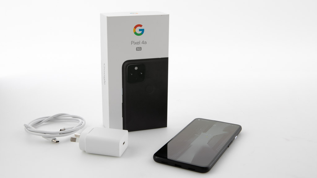 The 4a 5G with packaging and charger.