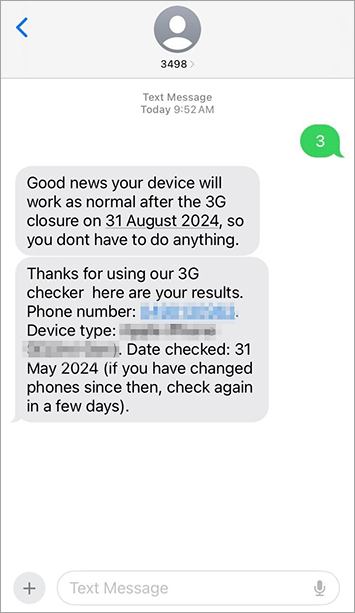 The quickest way is to text ‘3’ to ‘3498’ and an automatic reply will tell you if your handset will keep working as normal after the shutdown.