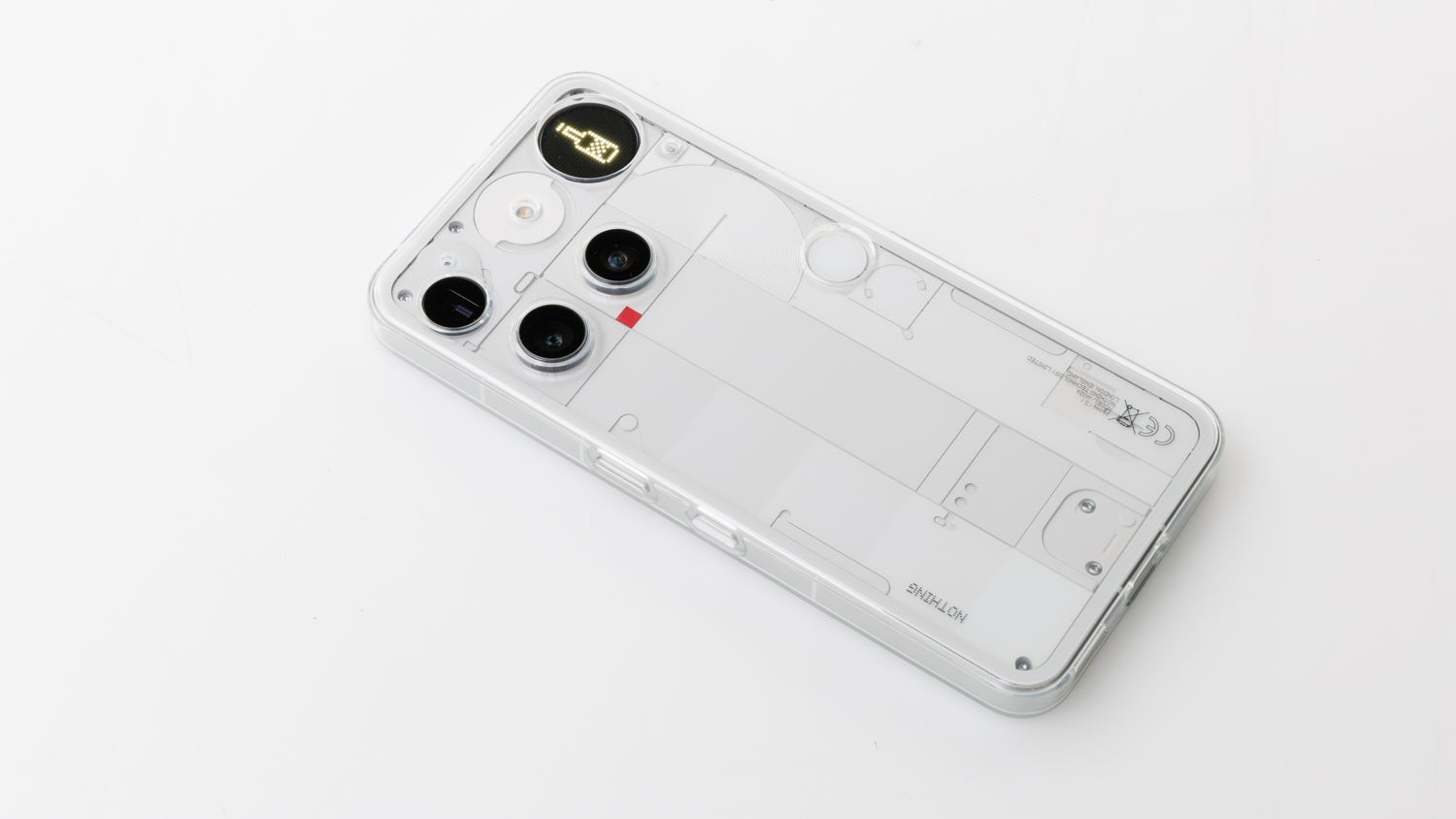 The clear case it comes with protects the raised camera lens, provides access to the Glyph button, and lets you see all the Glyph flashing lights when getting notifications.