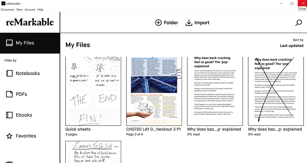 The other advantage is it doesn’t try to be a web browser. It simply delivers anything you’ve been looking at in Google Chrome to your ReMarkable 2 in an appropriate format. You can keep all your files or web pages saved to the cloud and read them either online or download them to the device for offline reading.