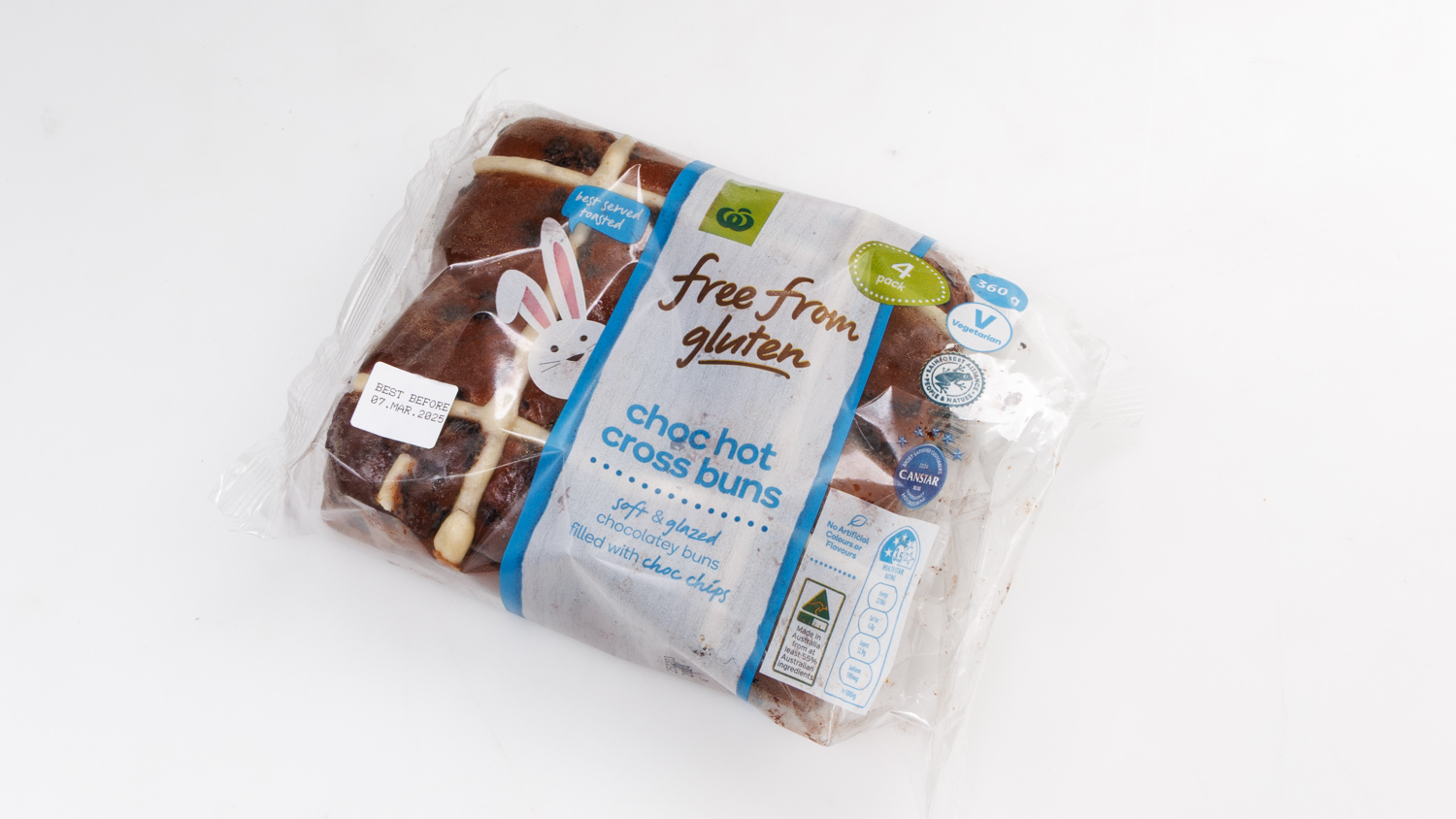Woolworths Free From Gluten Choc Hot Cross Buns