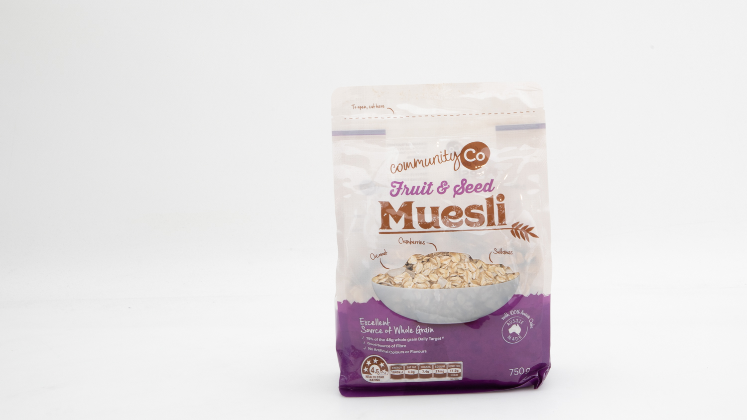 - Don’t rely solely on claims like “good source of fibre” or “high in fibre” – many mueslis with above-average fibre may not actually claim that on the packaging.