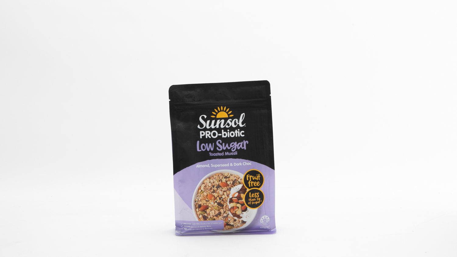Recommended: Sunsol Pro-biotic Low Sugar Toasted Muesli, Almond, Superseed & Dark Choc 400g