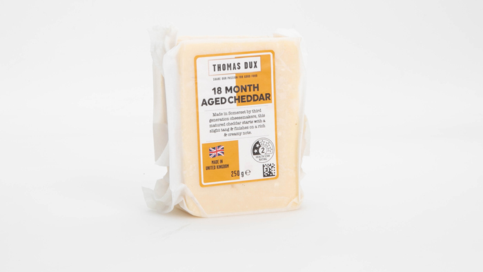 Some manufacturers use pack colour to indicate age – you might find ‘mature’ cheddars in a red pack, and ‘vintage’ cheddars in black, for example. And some provide a strength indicator with a lower number indicating a mild (or young) cheese, and a higher number indicating a stronger (more mature) cheese. But these systems are really only useful for comparing products within a brand, as the age represented by each colour and the strength number scales aren’t consistent between brands.