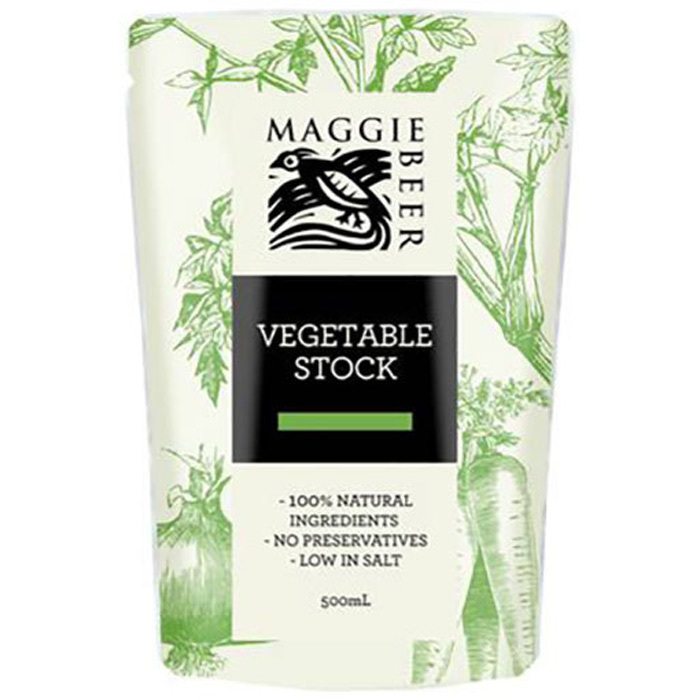 Maggie Beer Natural Vegetable Stock has 45.6mg sodium per 100mL. Vegeta Real Gourmet Stock powder comes in second with 136.4mg per 100mL, and for those watching their hip pocket, this was the best value of the products we looked at, costing only $0.01 per 100mL when made up as directed.