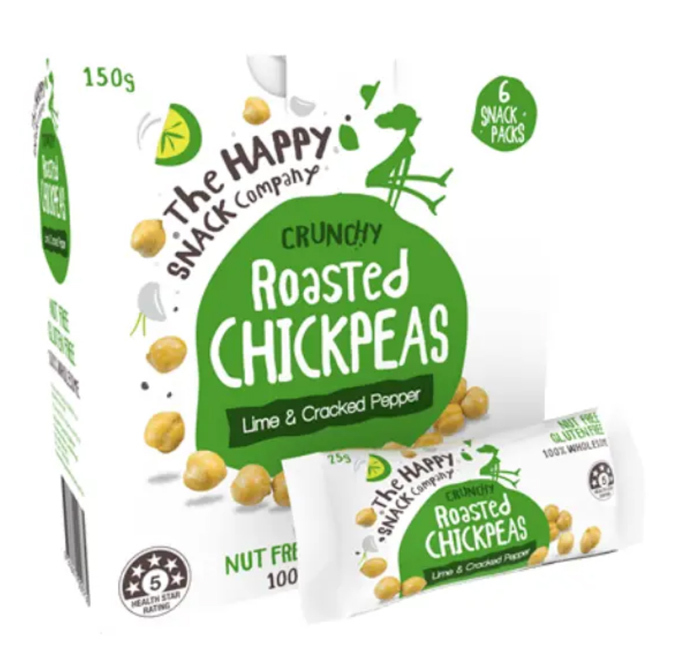 Healthier roasted chickpeas: The Happy Snack Company Crunchy Roasted Chickpeas Lime & Cracked Pepper