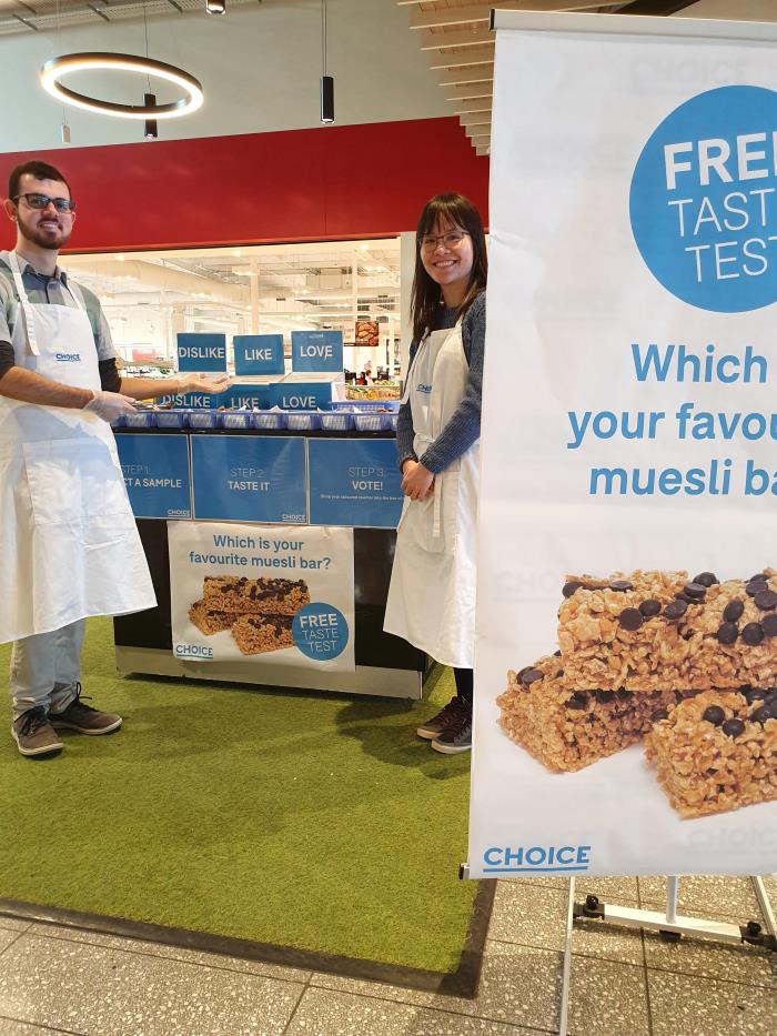 We set up a blind tasting in a shopping centre in Campbelltown, NSW, and invited members of the public to participate. Each product was given a code and its brand concealed. For each sample tasted, people decided if they disliked, liked or loved it. Participants tasted and voted on a total of 578 samples across all 11 snack bars. A minimum of 43 taste tests were completed per product.