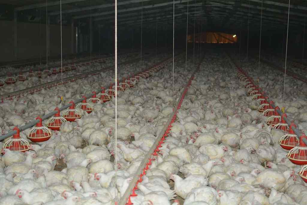 the chickens to be confined in sheds until they’re fully feathered, packed