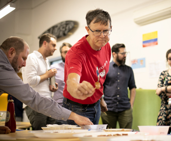 CHOICE staffers applying their testing experience to the democracy sausage taste-test.