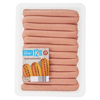 Aldi’s mixed-meat sausages were at the back of the (bulk) pack.