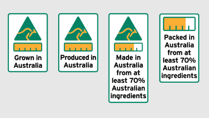 The following are examples of labels you should see on all priority foods that contain Australian ingredients: