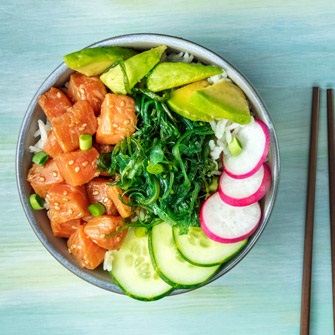 Poke bowls are a modern take on the traditional Hawaiian poke – raw fish served with sea salt, seaweed and candlenut.
