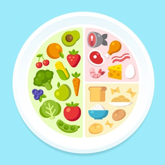 Half the plate (or in this case, bowl) is made up of vegetables, a quarter carbohydrates and a quarter protein, making it a healthy, balanced meal.