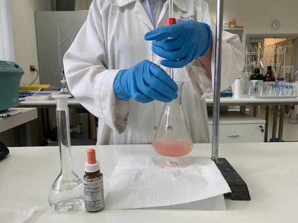 Determining free fatty acid level, titration in progress.