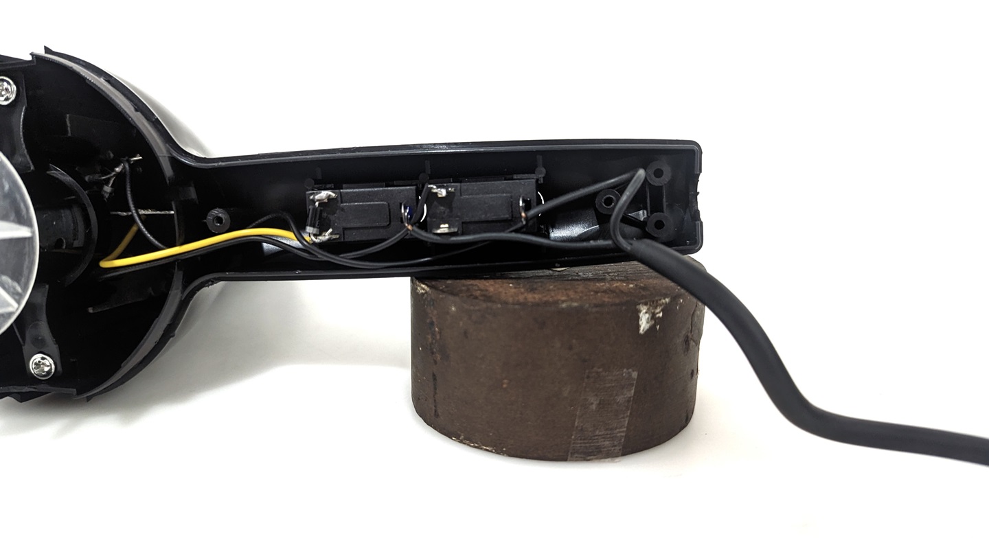 The power lead clamp is missing from the bottom of this hair dryer from Temu.The Temu hair dryer (left) is also missing the required risk of electrocution tag compared to the compliant model (right).