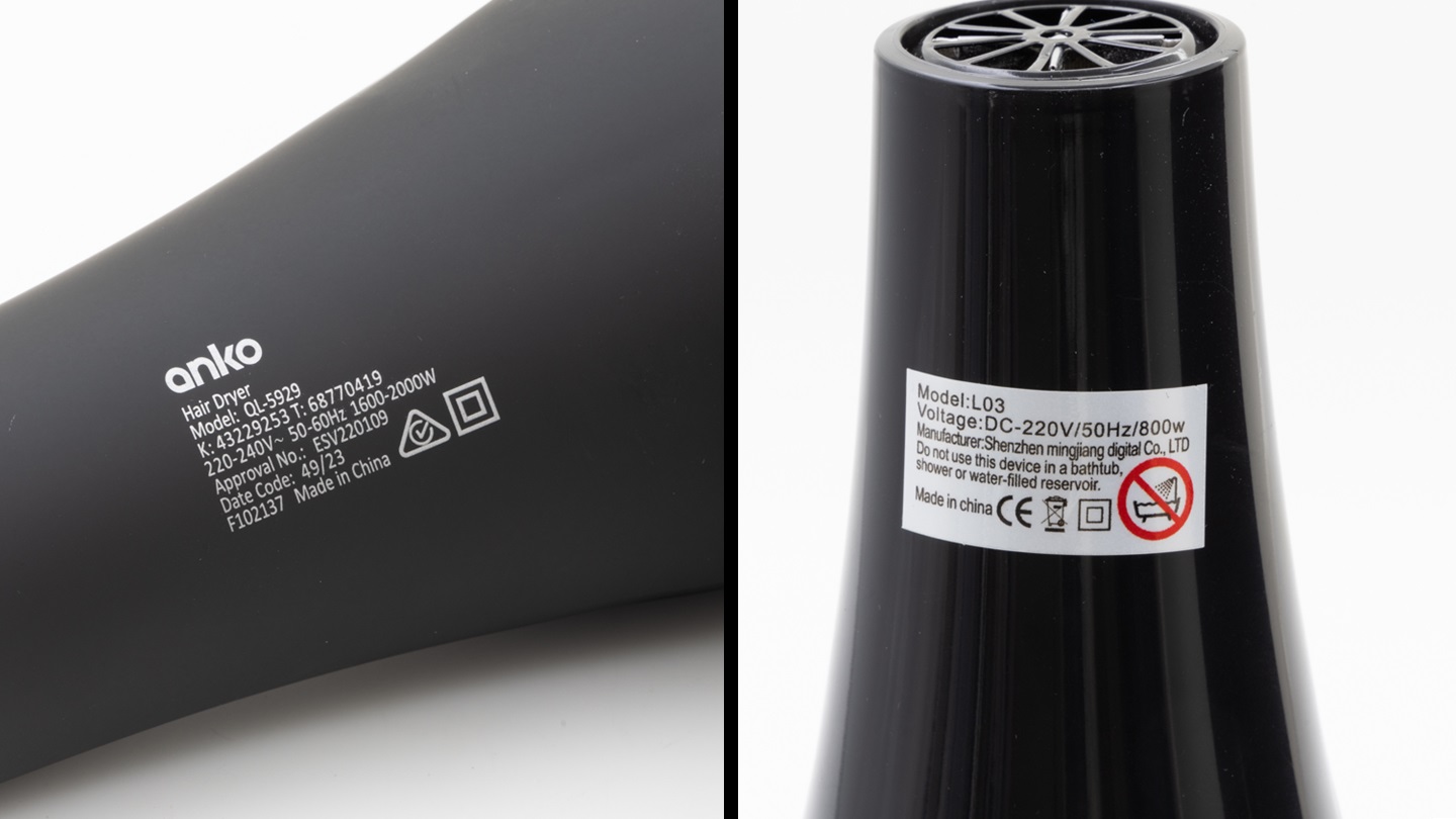 We bought a hair dryer from online retail giant Temu for our test. Upon arrival, we found that it lacked the safety certifications and Regulatory Compliance Mark (RCM). There was nothing on Temu’s website to suggest that the hair dryer was not cleared for sale and use in Australia, and we removed it from our test as a result.