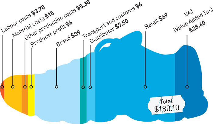 In Indonesia, workers earn around $3.70 for a pair of running shoes that later sells in store for about $180.
