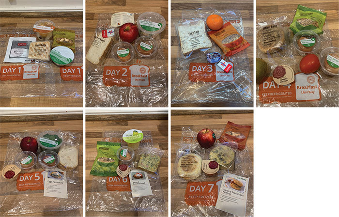 Obviously any fresh items need to remain edible and appealing over a whole week. However, a larger amount and wider variety of salad ingredients wouldn’t have gone astray or done much to alter the daily calorie limit.