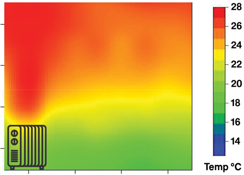 When using a heater in combination with a fan, the warm air is distributed evenly throughout the room.