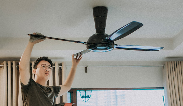In normal ‘summer’ mode, ceiling fans move anti-clockwise, generating a downward breeze that cools the skin and helps evaporate perspiration.