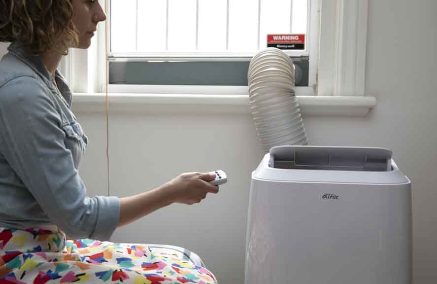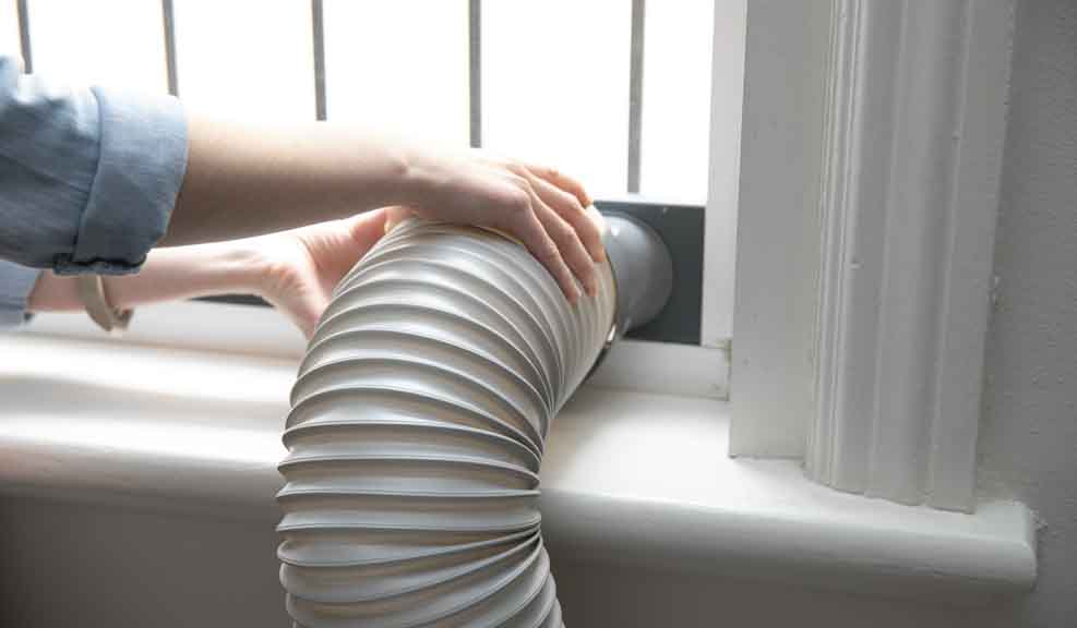 Portable air conditioners suck in warm, humid air, then cool and dehumidify it and blow it back into the room. The heat that’s been extracted from the air is blown back outside via an exhaust vent. You need to install this vent in an open window.