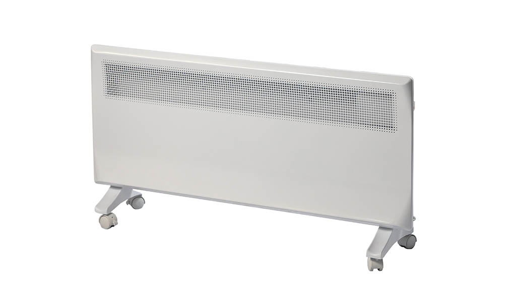 Panel heaters are a popular choice for bedrooms as they can emanate a gentle heat without a noisy fan. They are also often relatively light and easily portable, and can be mounted to a wall (this Omega model comes with castors, wheels and wall mount brackets).